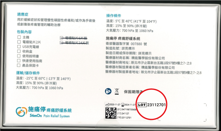 請填寫外盒上產品批號[LOT] 8碼.